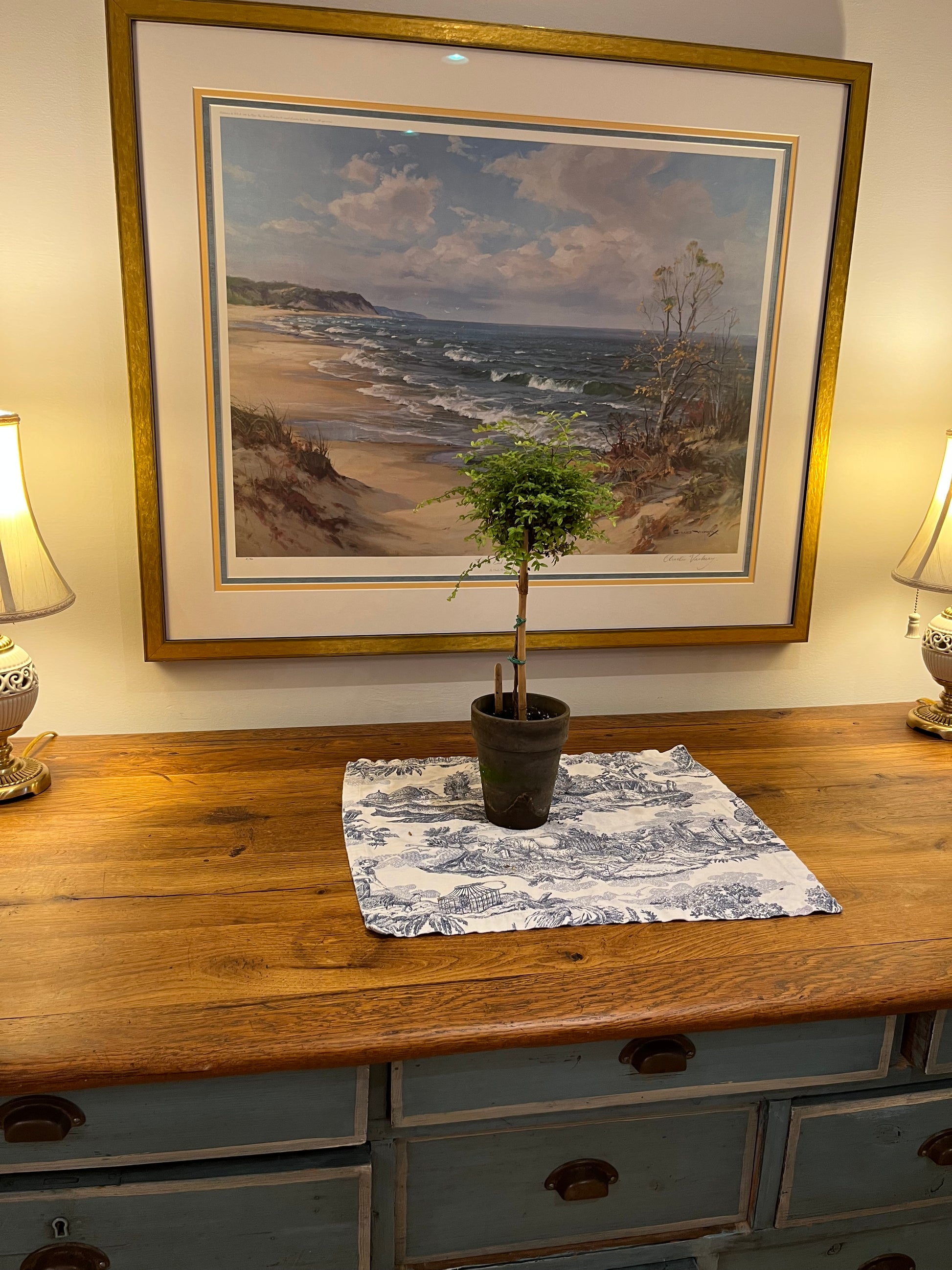 This Boxwood Honeysuckle Topiary is a beautiful and versatile addition to any home. The plant is known for its dense, evergreen foliage and its ability to be shaped into a variety of forms. This particular topiary has been carefully shaped into a spherical shape, making it a perfect centerpiece for any room.